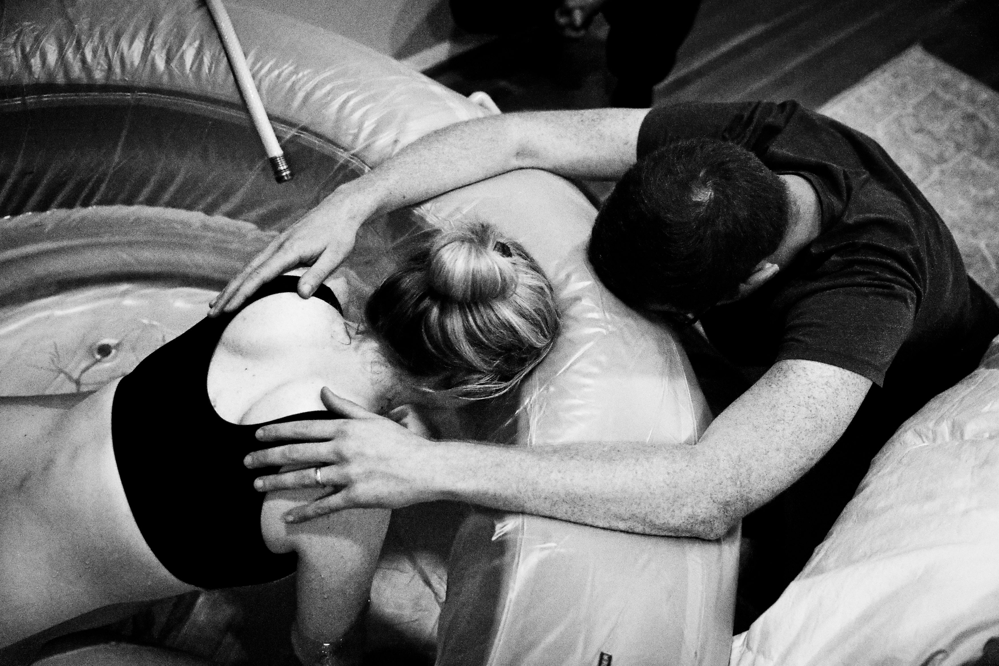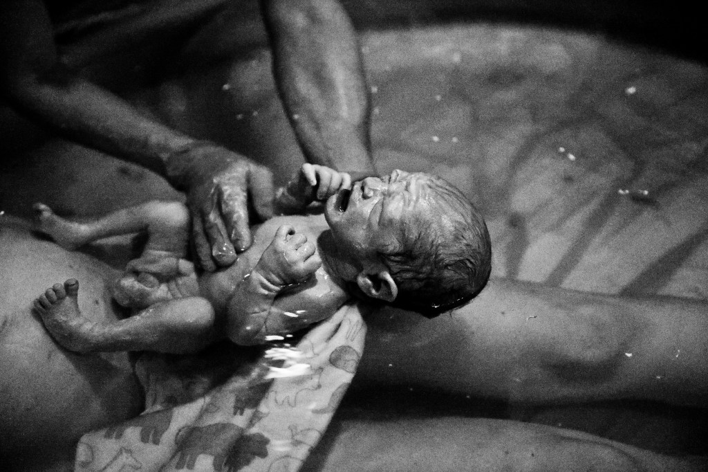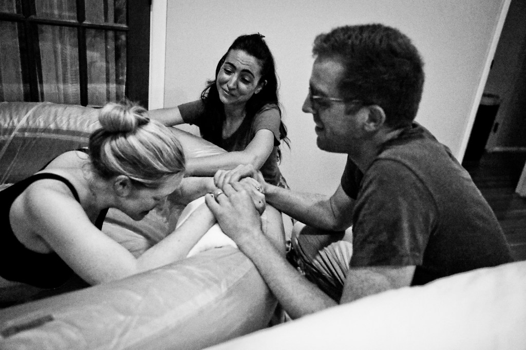 Within less than a minute of settling into the water, I felt another contraction coming and it literally forced me to quickly flip over onto my knees. My body knew exactly the position it wanted to be in. And there on all fours, I felt my body and brain uncontrollably release together, followed by a contraction so strong (and a moan so loud) it caused the whole team to make their way back into the room.