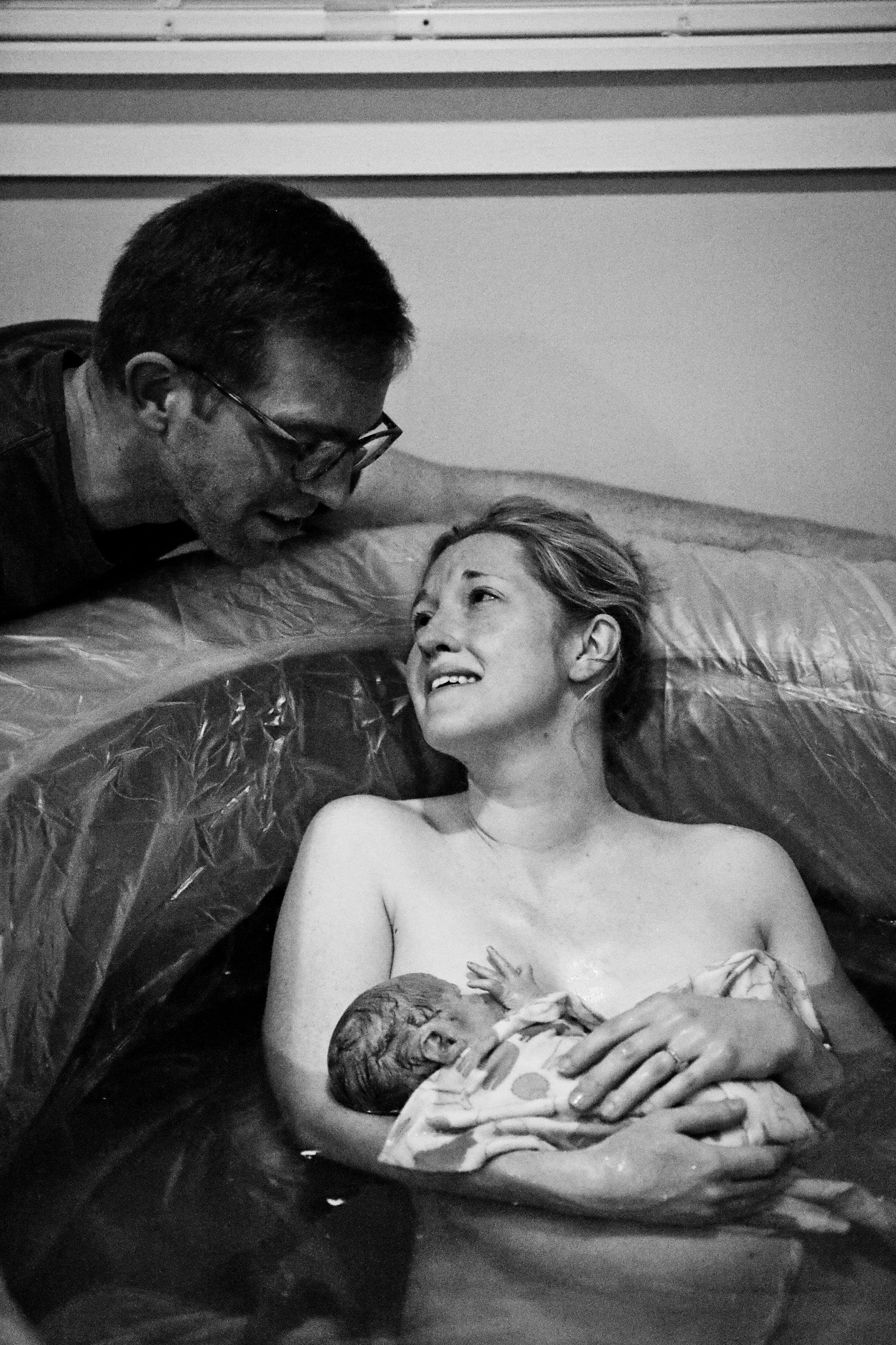 The overwhelmed tears and cheers took over the room again. Gentle, water birth (and much smaller baby, ha!) for the win!