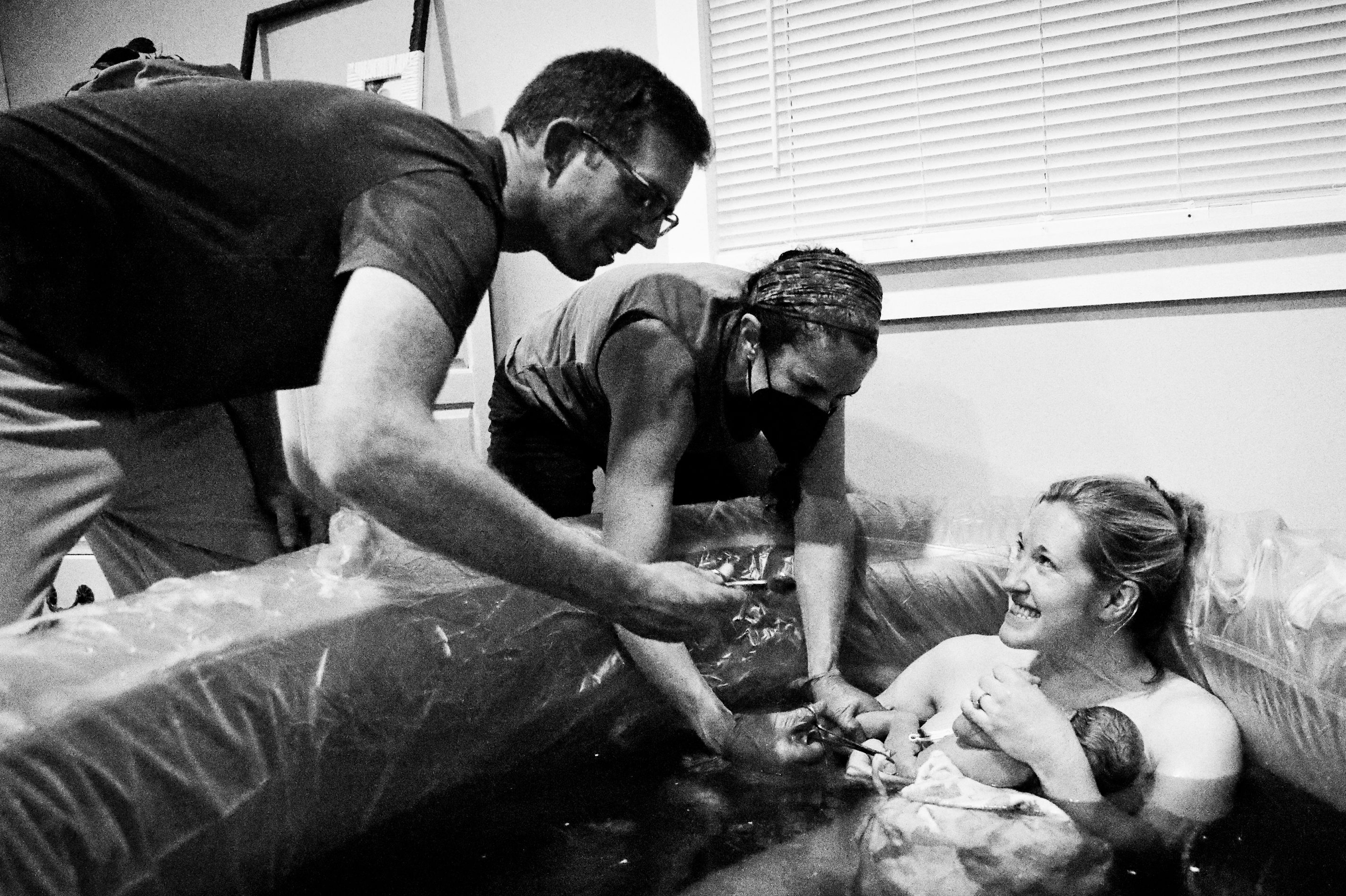 The team then assisted me in standing up in the tub, hopeful that gravity could help me birth the placenta more easily. It delivered shortly after and I was able to move right over into our bed, to continue in the “Golden Hour” with William and Oliver. Pure bliss! The 3 of us joyfully snuggled up while the team almost without notice began to clean up our surroundings, throw in a load of laundry, and get something for me to eat (frozen grapes!).