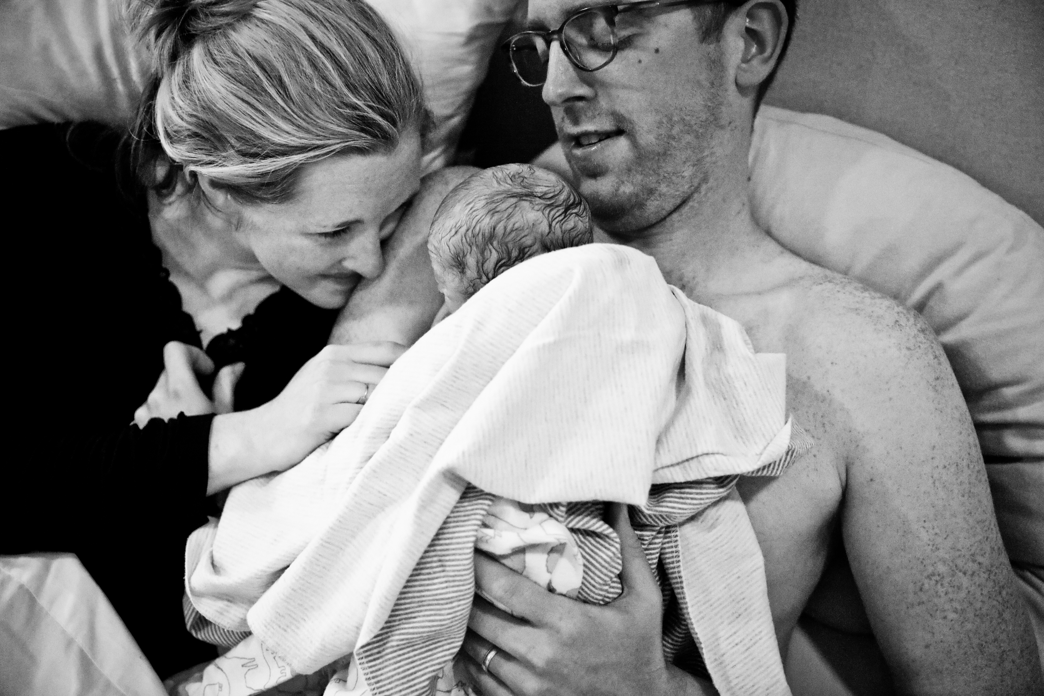 By 11:00 PM, less than 3 hours after Oliver was born, everything was cleaned up, the lights were dimmed, and our wonderful team came in for one last hug goodbye. They each escorted theirselves out while our photographer, Kate, lingered a bit longer to capture a few more moments of us snuggling with our newest addition.