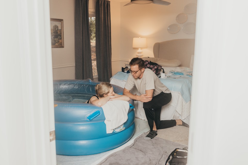 In true Brittany fashion, I now needed to mentally adjust to the new situation. If you haven’t noticed by now, my brain has a death grip on my body’s ability to birth quickly. I eased into the tub, trying to force myself to relax now, fighting the urge to process everything. For someone who loves a plan, to be in control, to be comfortable, and struggles with change — it was difficult for me to go from cross legged on the bed for an hour praying she wouldn’t come yet — to okay, now go, it’s fine if she is. I appreciated everyone giving me space to quietly allow my brain to catch up to my body.