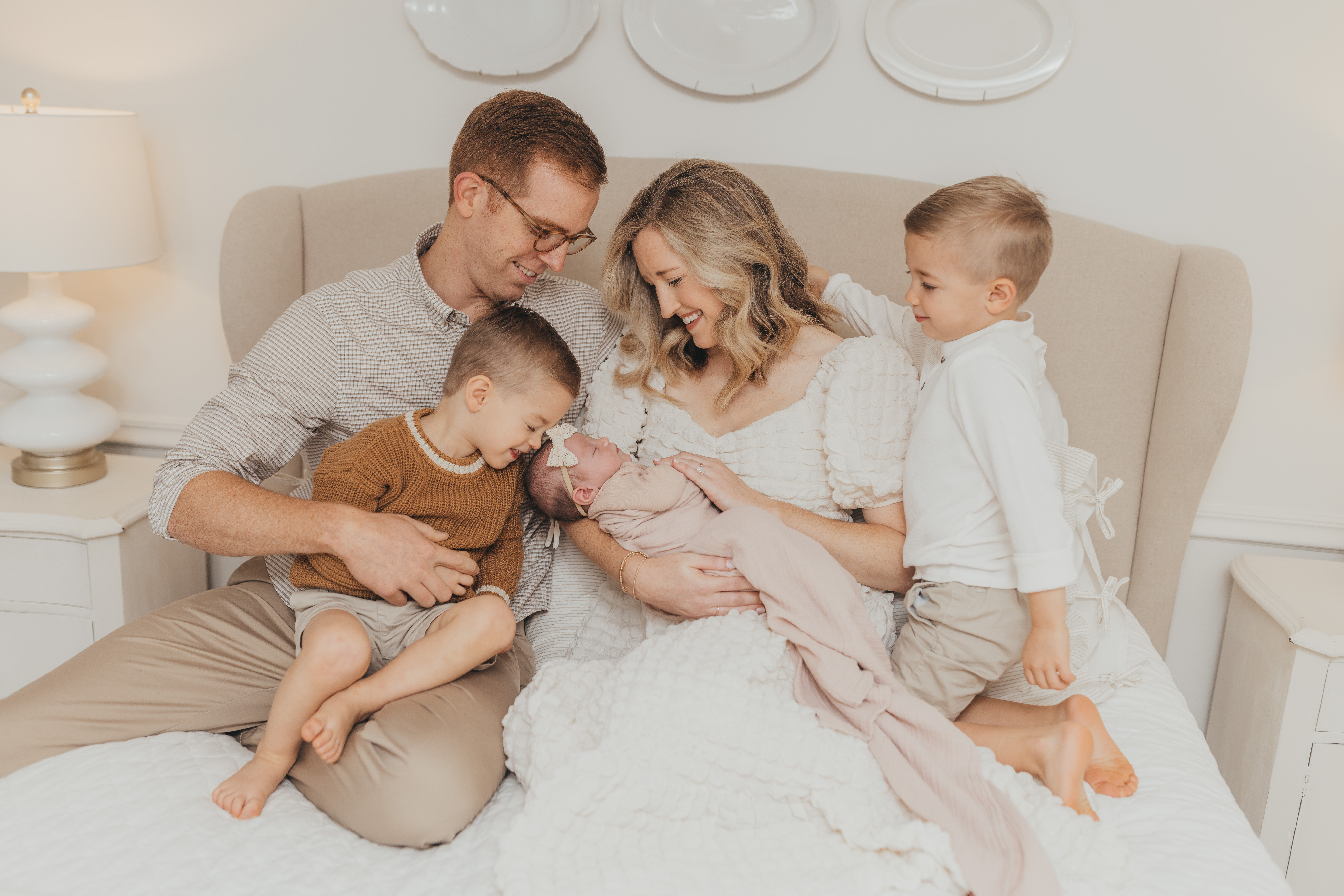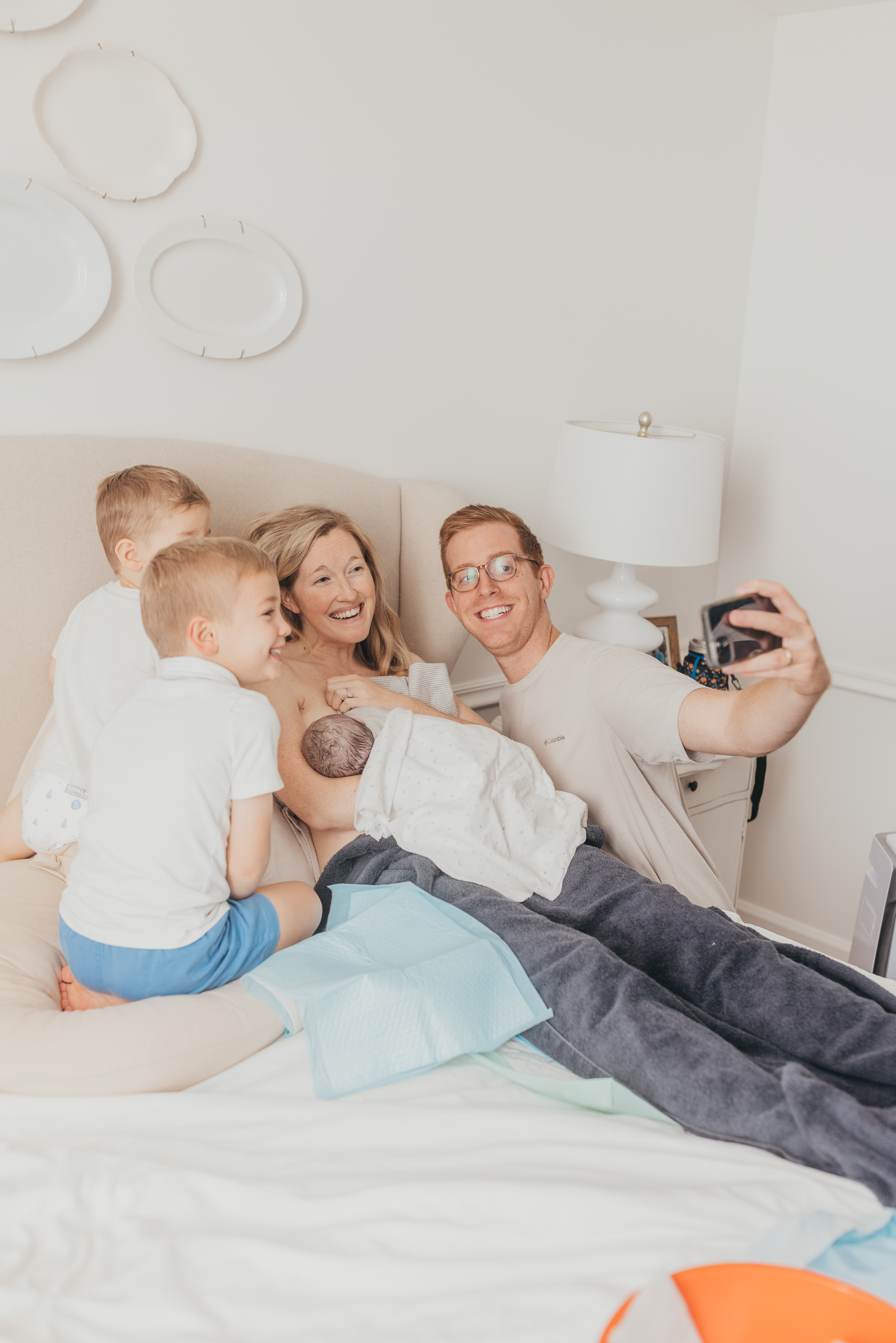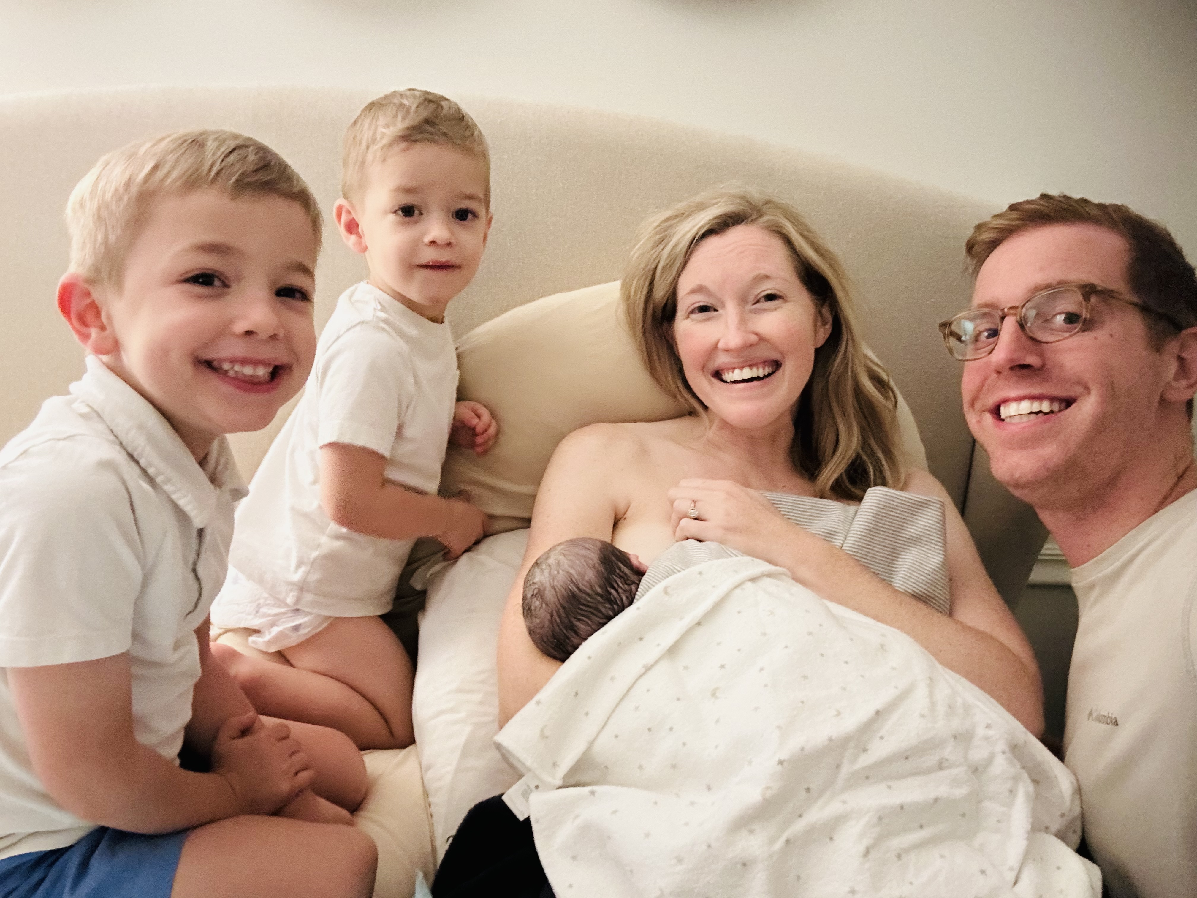 After a few more minutes, everyone helped me and Georgia move to our bed. They covered us in warm blankets and I was in disbelief that she immediately wanted to nurse. (Something that didn’t happen as quickly or organically with the boys!) Around that same time, my mom and Henry and Oliver eagerly came in from trick-or-treating to meet our newest addition. All immediately smitten, of course.