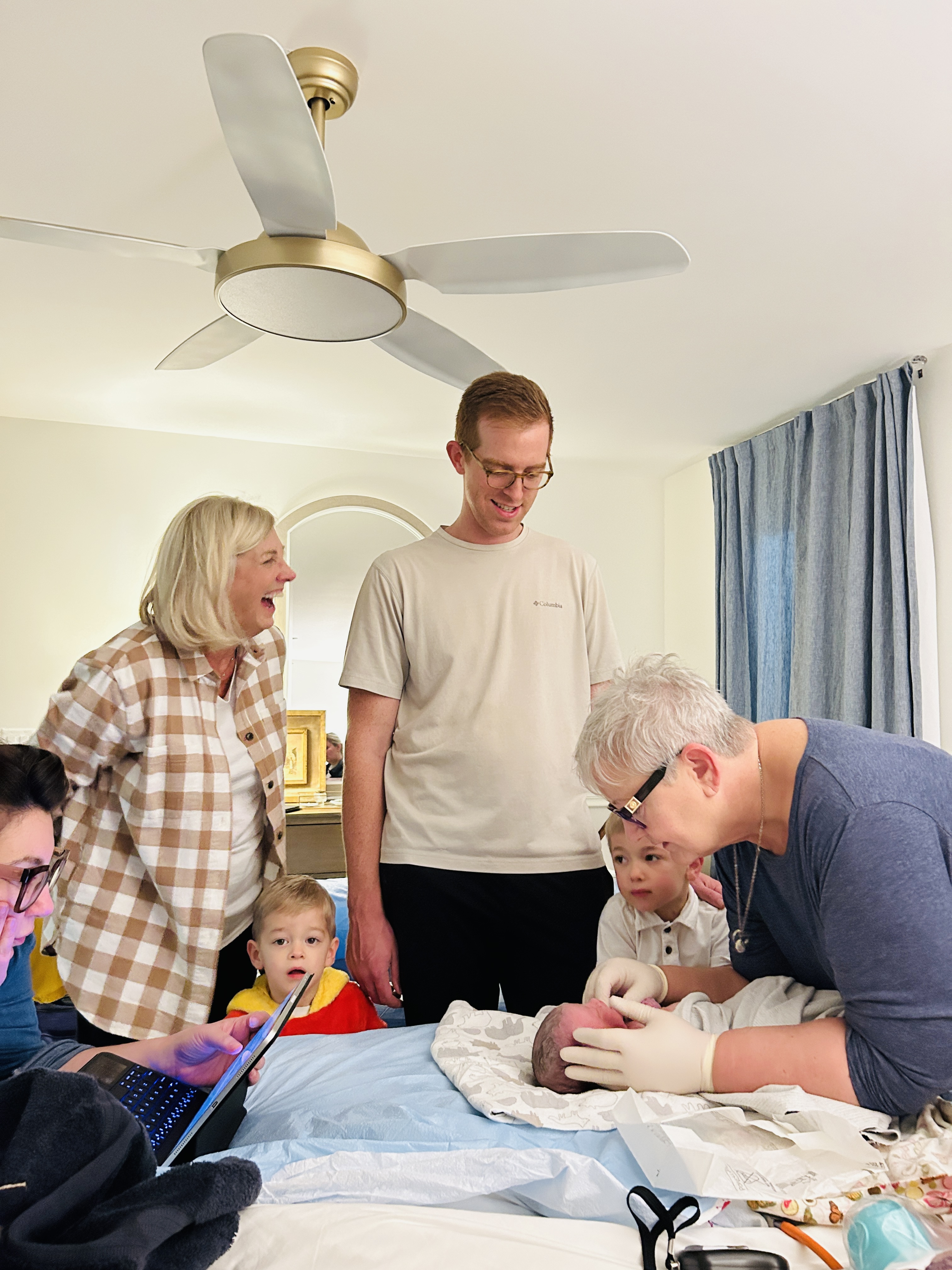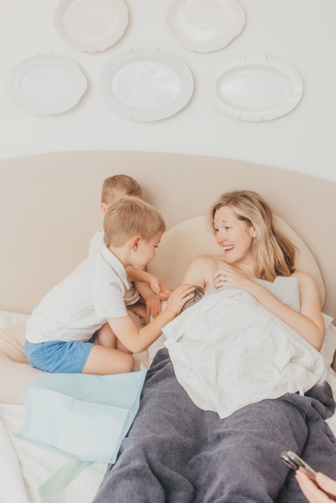 My mom peaked over the upstairs awning, surprised to see me sitting in the family room with the birth team. Her eyes lit up, “UM, do we have a baby?!” “Not yet” we all replied in unison with laughter. The boys must have heard all the commotion and slowly made their way downstairs too — wiping their sleepy eyes, trying to figure out why we had so many early morning guests. I jumped into mom mode, knowing we needed to get breakfast going and talk to the boys about what the day would look like since their sister was (hopefully) on her way.