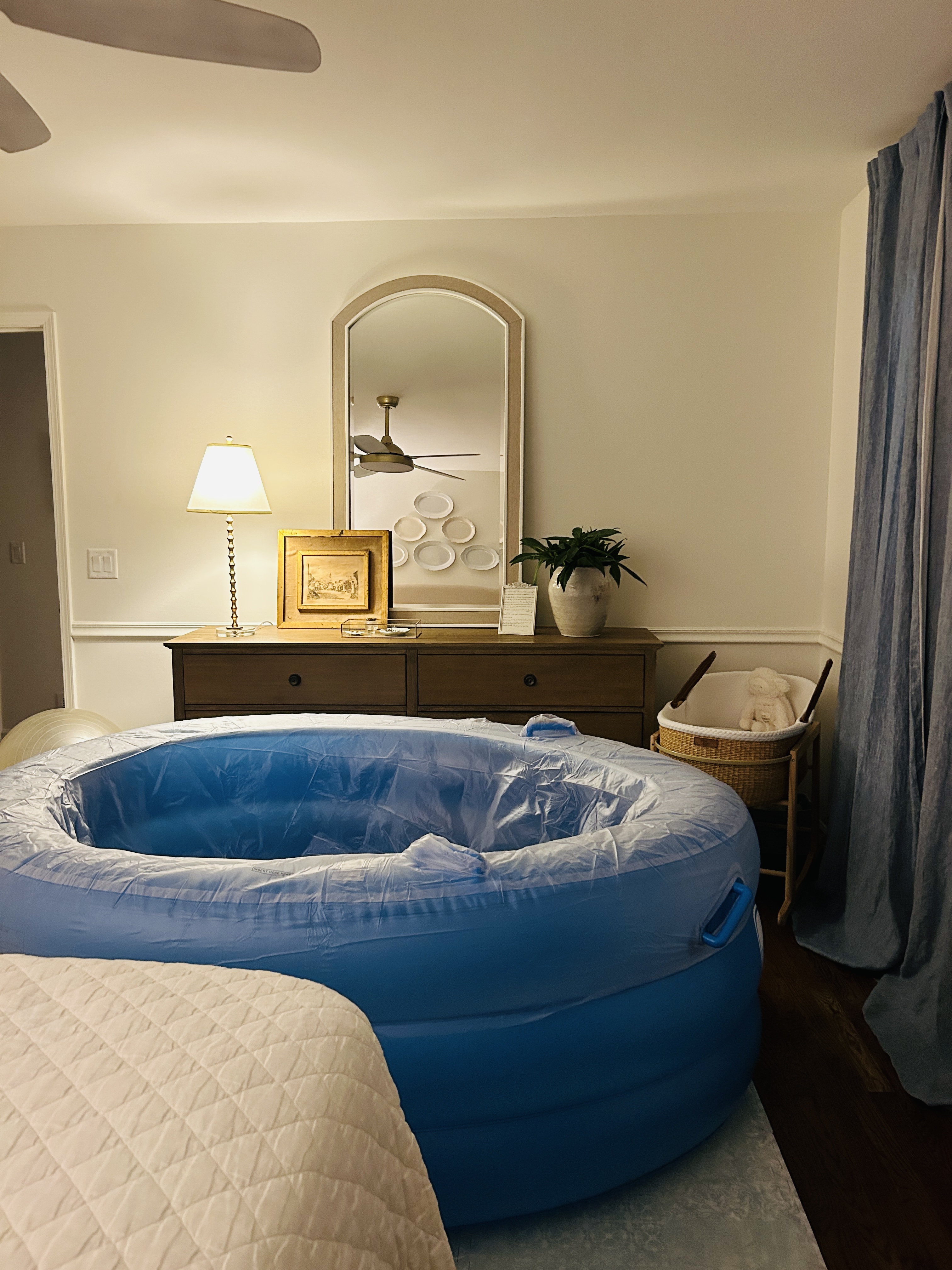 Around 5:30 PM, the 2 student midwives (who had slept at our house the night before) arrived — Debbie was still on the phone and not far behind them. I’m on all fours in the tub, swaying back and forth, I can feel her right there and yet I’m SUPER distracted. The water wasn’t very warm and it wasn’t quite high enough yet either, I couldn’t tune out the 3 midwives introducing themselves to one another around me, the playlist wasn’t on a song that fit the current vibe, it was brighter in the room than I wanted, there was the sound of trick-or-treaters in the distance, and of course, my midwife, who I had bonded with and envisioned next to me in this very moment, was not physically in the room. I remember in this moment praying for the Lord to strip me of all of these distractions and making the choice to finally surrender to this birth.