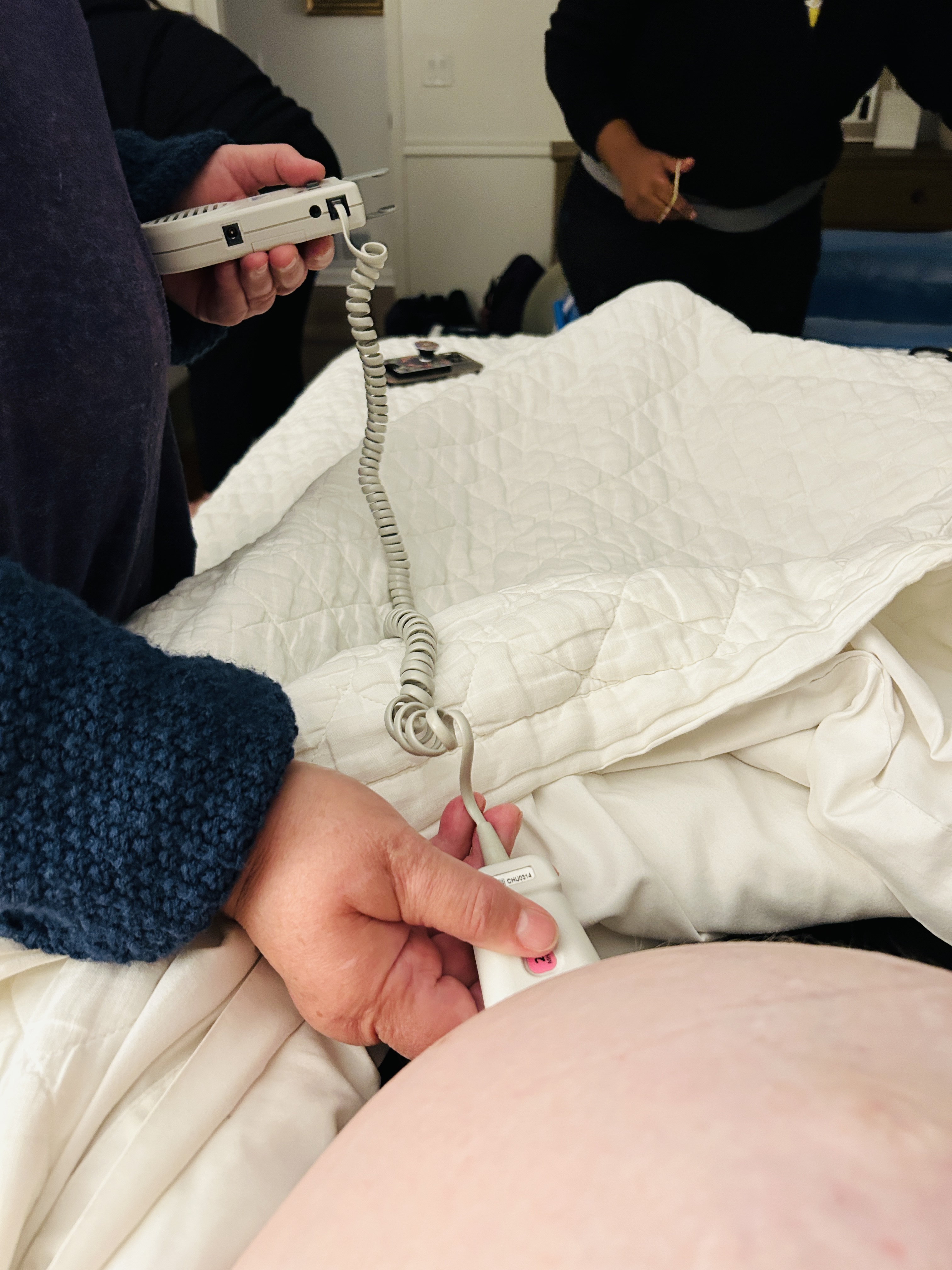By 2 AM, all 3 of my midwives (Debbie + 2 assistants) arrived with sleepy eyes and soft smiles. I quietly ushered them inside while the rest of the house remained asleep. While they got themselves situated, I decided to wake up William and catch him up to speed. They checked my progress on our bed around 2:30 AM and we were all pleased that I was almost fully dilated. Debbie expressed relief that I had texted her when I did and that it was a good thing that they were already there.