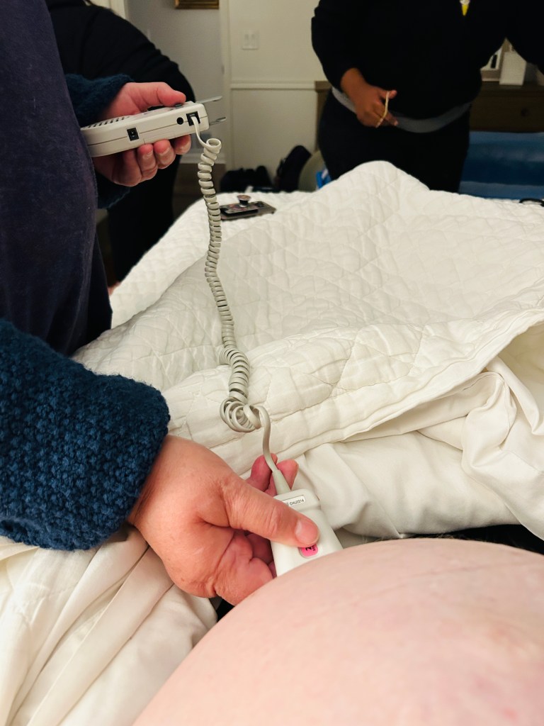 It was now 7 AM, and our lovely birth team decided to give us a little bit of space to start the day and for me to not feel like a “watched pot”. They slipped over to a nearby breakfast restaurant in order to not get too far — since they all lived over an hour away from us. They encouraged me to rest and to let my mom and William step into my regular duties instead. I agreed and went back to sleep. Around 9 AM, the 3 of them were back from their hideout breakfast, gently knocking on our bedroom door to check in with me. I was definitely not in active labor any any longer and my vitals were great so they made the decision to head back to the office to fulfill their regular appointments scheduled for the day. Of course, with all of their phones set on loud. They joked that while all of this is still considered normal and even common progression in their line of work, that once this baby is truly ready, she’ll be “comin’ quick”! And that they felt certain they would be seeing me again within the next 24 hours.
